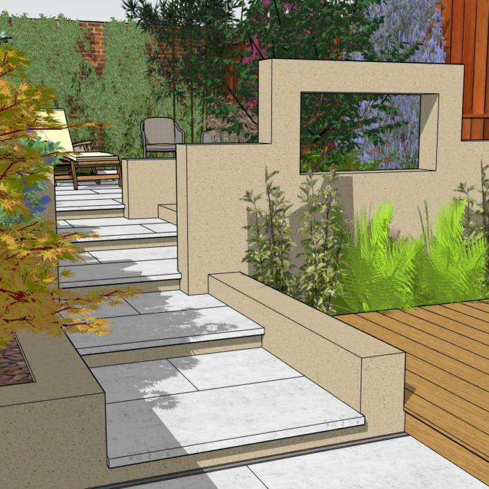 Successful garden design is a combination of many factors, the most important being a good relationship between client & designer. It is important to establish your needs & your ideas but also to understand the size, aspect & character of the existing space along with the house and the doors & windows through which the garden will be vewed & accessed.