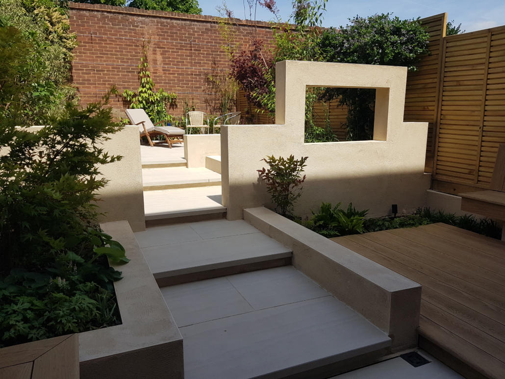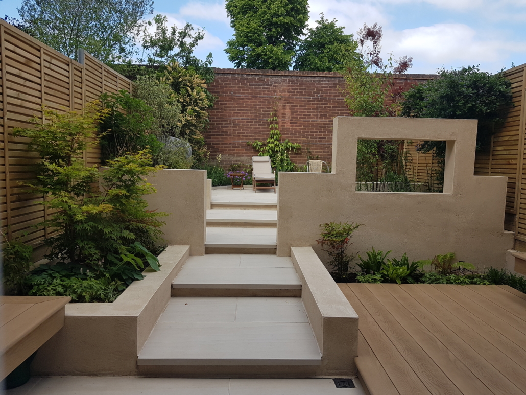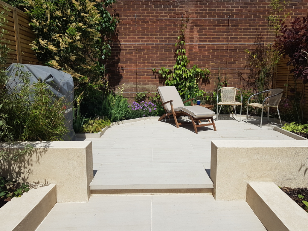 Generous sized steps and planting areas seem to go against maximising this space, but the overall effect of creating different, usable areas actually makes the garden feel bigger.