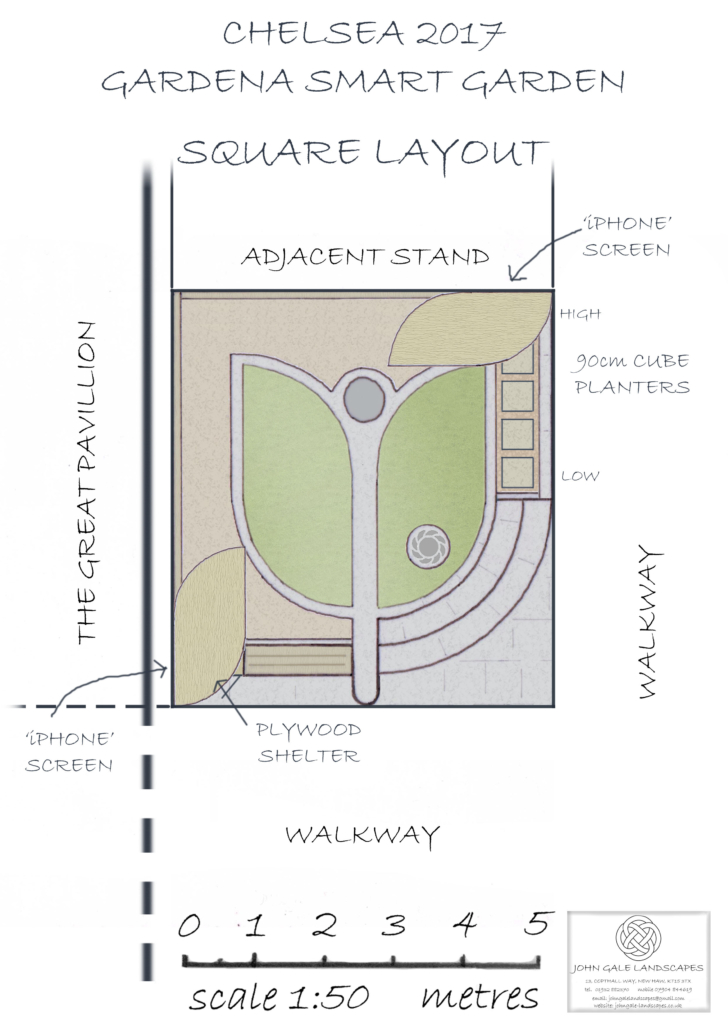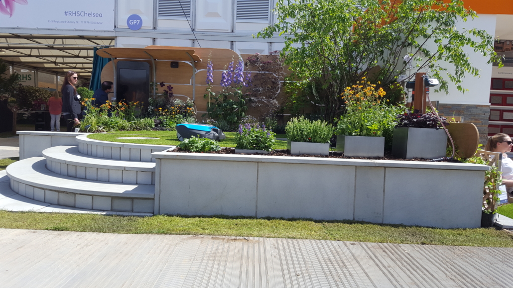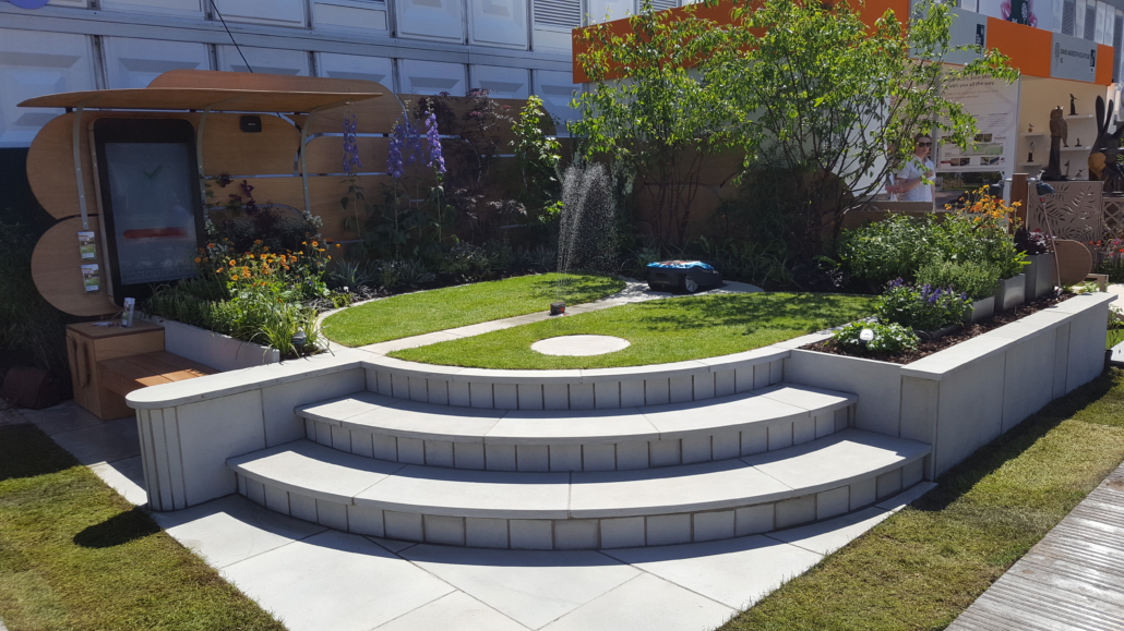 The brief for this project was to create a showcase garden to demonstrate Gardena’s new ‘smart’ system for controlling automatic irrigation and automatic robotic lawnmowing.