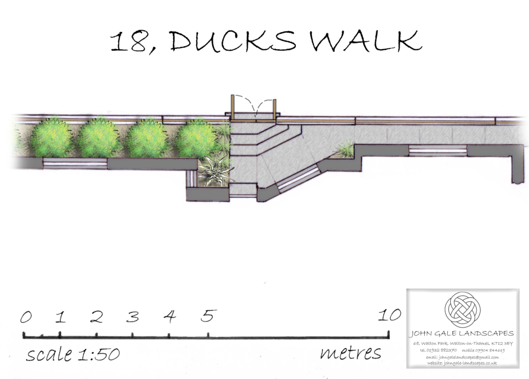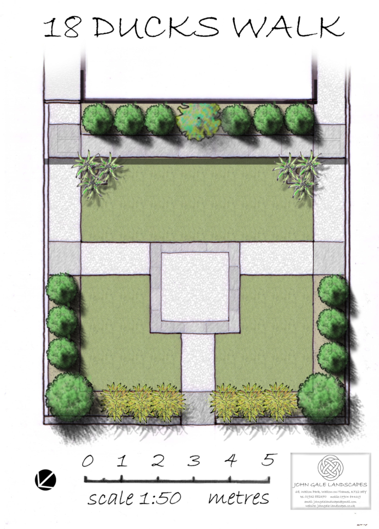 Once parking in the area became an issue the front garden had to go to make way for a double width drive which was also designed by me. I had also designed the rear garden (see ‘Family Garden’ in the Medium & Large Gardens section) of this modern conversion of a 1930s family house.